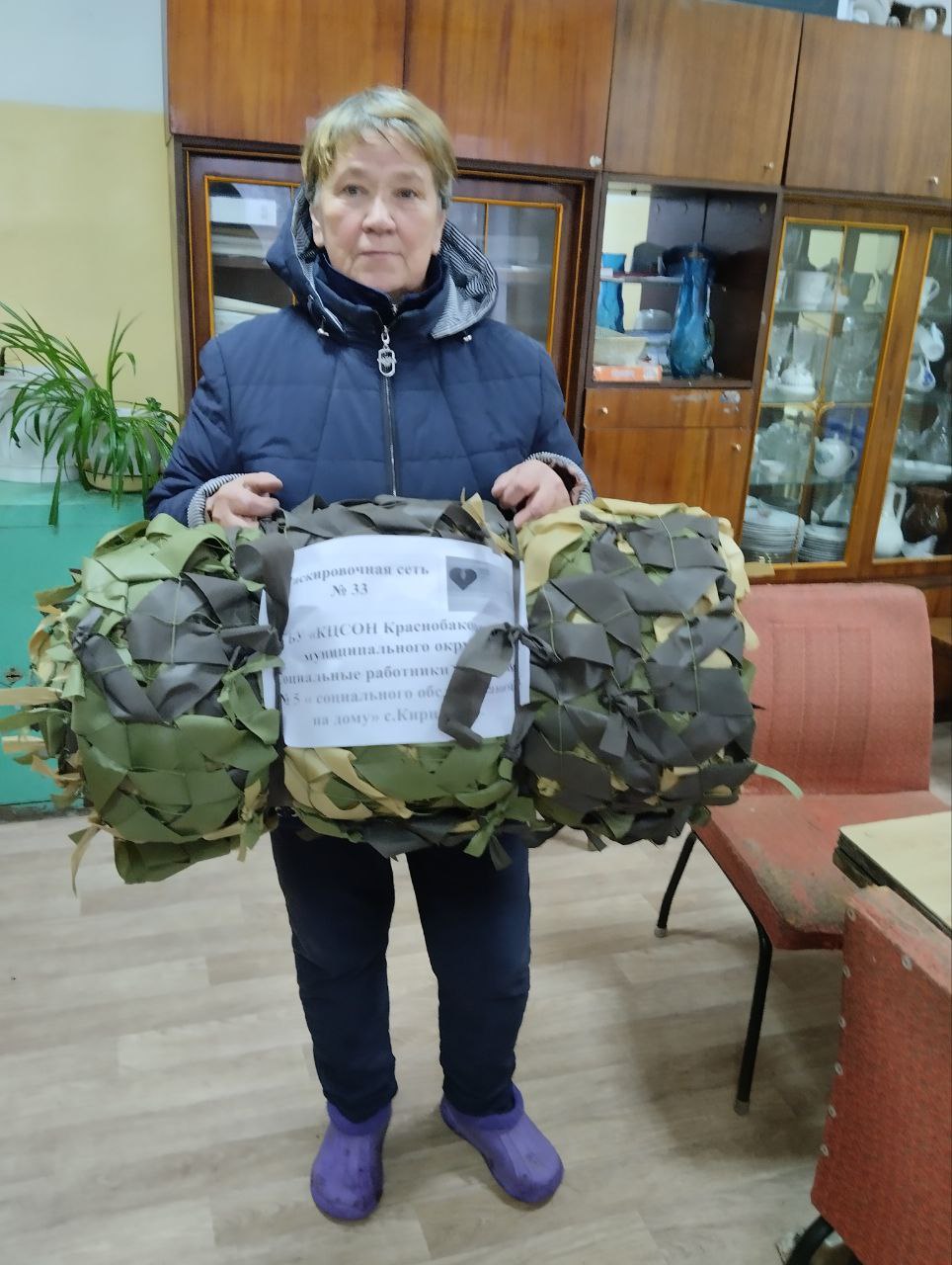 Социальные работники ГБУ "КЦСОН Краснобаковского муниципального округа" активно плетут маскировочные сети для отправки в зону действия СВО