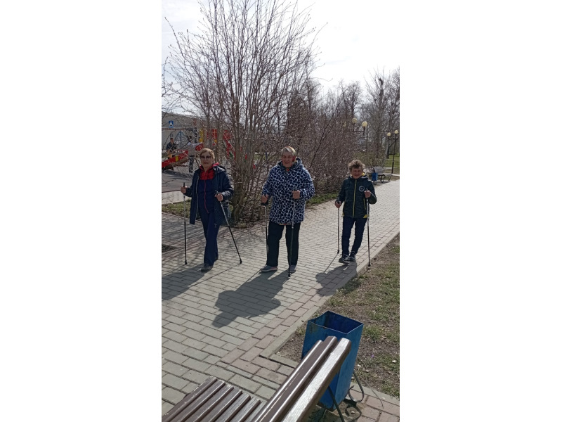 В отделении дневного пребывания прошло занятие по скандинавской ходьбе и занятия на уличных тренажерах.