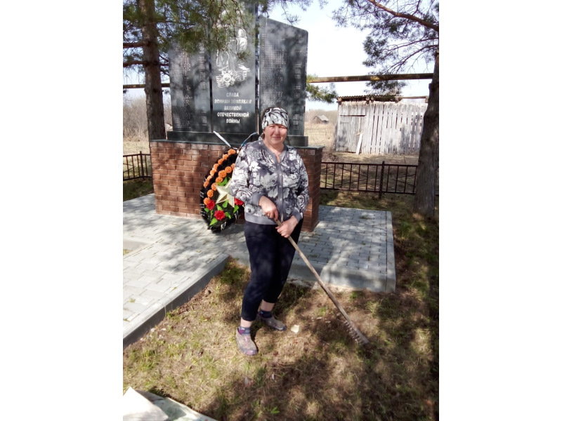 Социальный работник Одиночкина Татьяна Владимировна приняла участие в субботнике около памятника ветеранам ВОВ с. Новое Урюпино.
