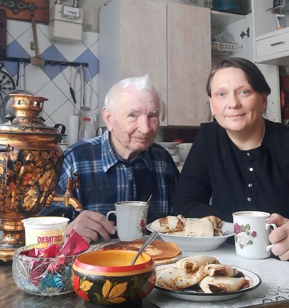 Разгар масленичной недели, и это значит, что румяные блинчики и оладушки уже на столах у получателей социальных услуг на дому.