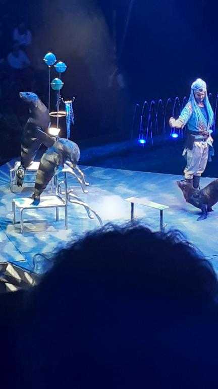 Представление происходило в водной стихии, которая делает представление по-особенному эффектным и необыкновенным. Все, что происходило на арене цирка, было похоже на волшебство. Впечатлили декорации, костюмы и игра артистов.