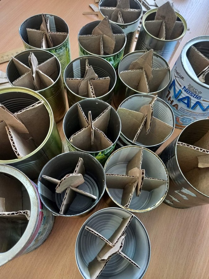 Тысячи волонтеров помогают фронту. И мы вяжем носки, теплые вещи, но к сожалению, это не спасает наших ребят в окопах от холода. На фронт нужны окопные свечи для обогрева в большом количестве. Со всех населенных уголков нашего района нам принесли жестяные банки.