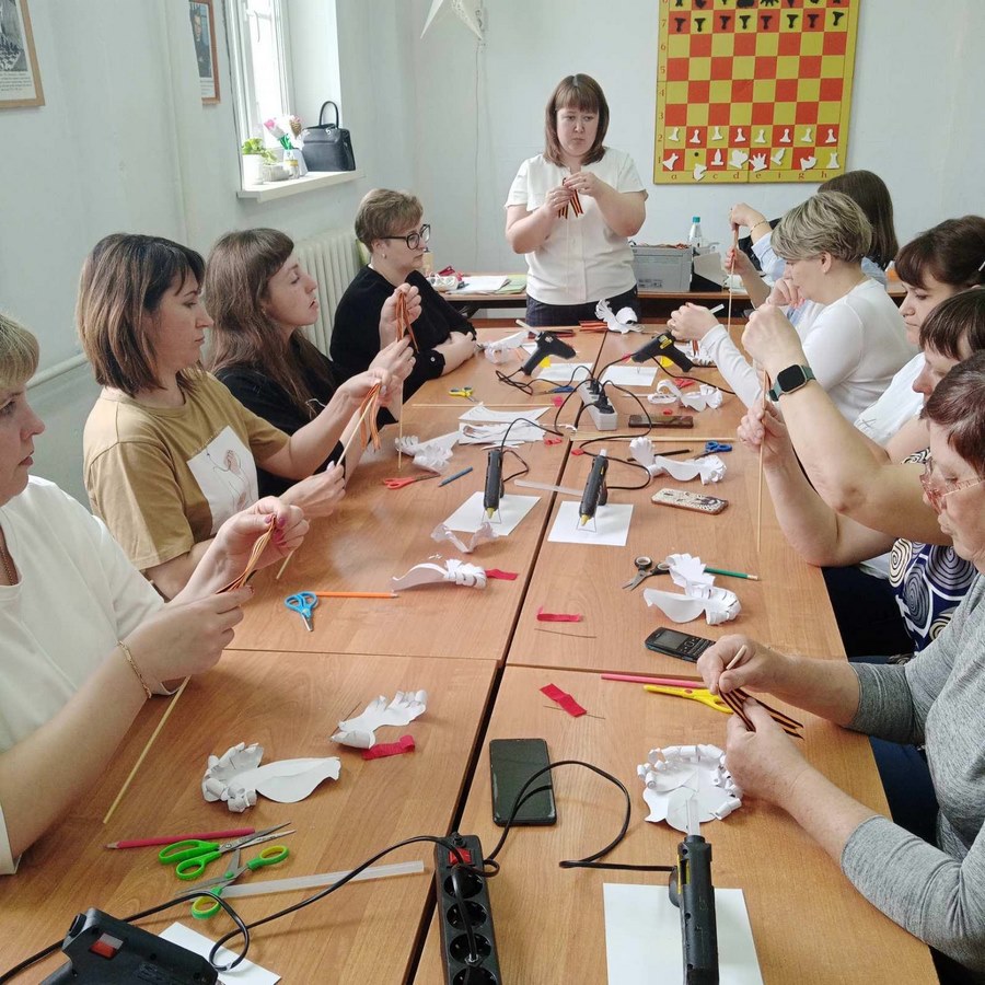 В преддверии праздника 9 мая наши коллеги, социальные партнеры из Дома Детского Творчества, в рамках акции «Белый голубь-символ мира», провели для специалистов Центра и «серебряных» волонтеров мастер-класс по изготовлению сувенира в форме этой птицы.